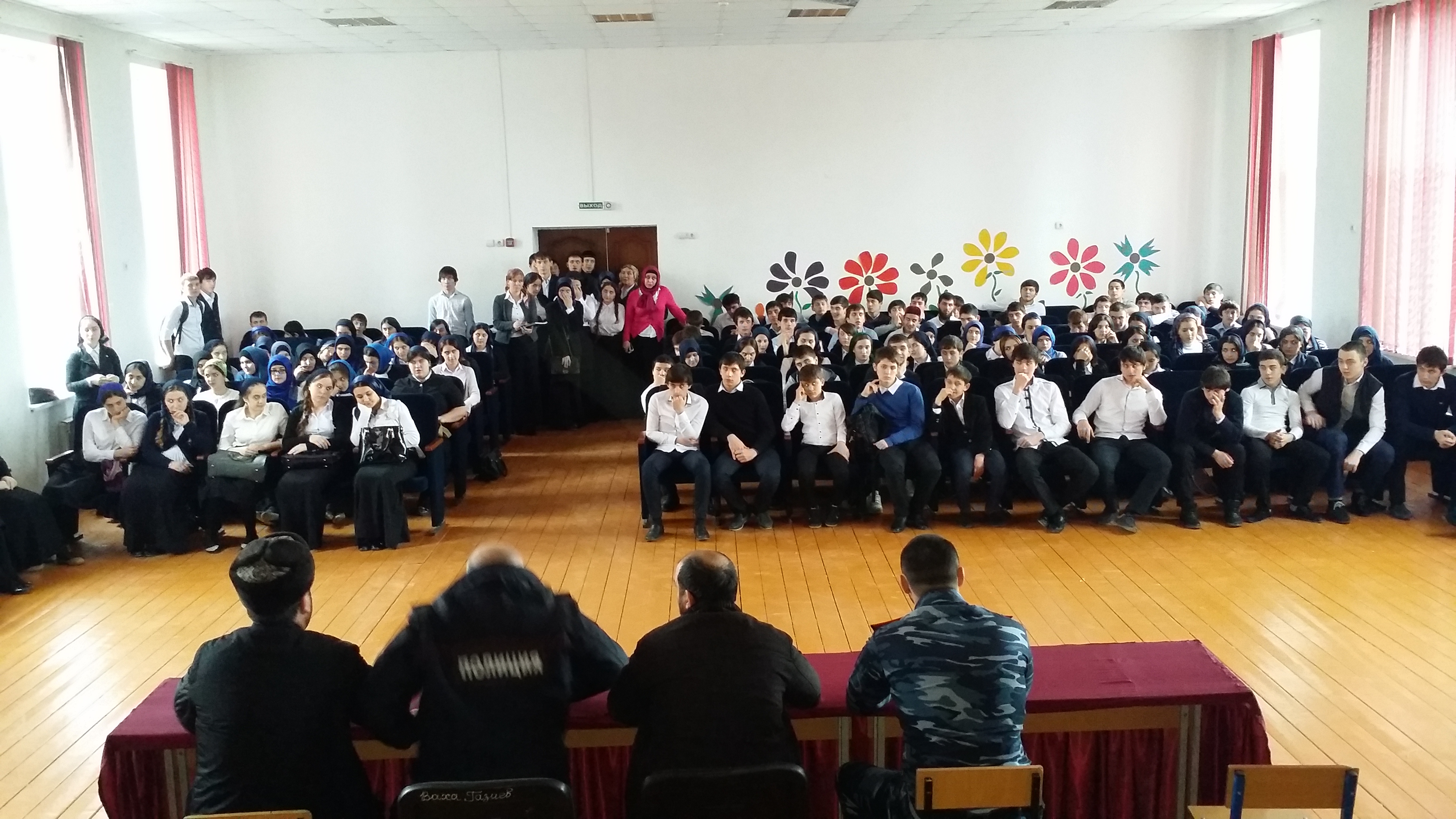 28.01.2015Инспектором по делам несовершеннолетних Октябрьского района Ампукаевым Тамерланом совместно с кадием района и педагогом-организатором по духовно-нравственному воспитанию Муртазалиевым К.М. была проведена профилактическая беседа с учащимися нарушителями школы в актовом зале МБОУ «СОШ № 53» г.Грозного, где ребятам объяснили, какое наказание их ждет в случае, если они не будут себя хорошо вести, или же будут нарушать устав школы. Также говорилось об указе Главы ЧР Кадырова Р.А. «О запрете ношения телефонов в школу». Кадий района, в свою очередь, напомнил, что слушаться учителей, соблюдать устав школы-это одна из основных частей Имана.