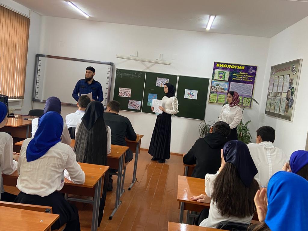 В течение апреля в МБОУ "СОШ №53" г. Грозного социальным педагогом, педагогом-психологом и также педагогом по ДНВ были проведены тренинги среди 7-11 классов, направленные на популяризацию здорового образа жизни среди подрастающего поколения.