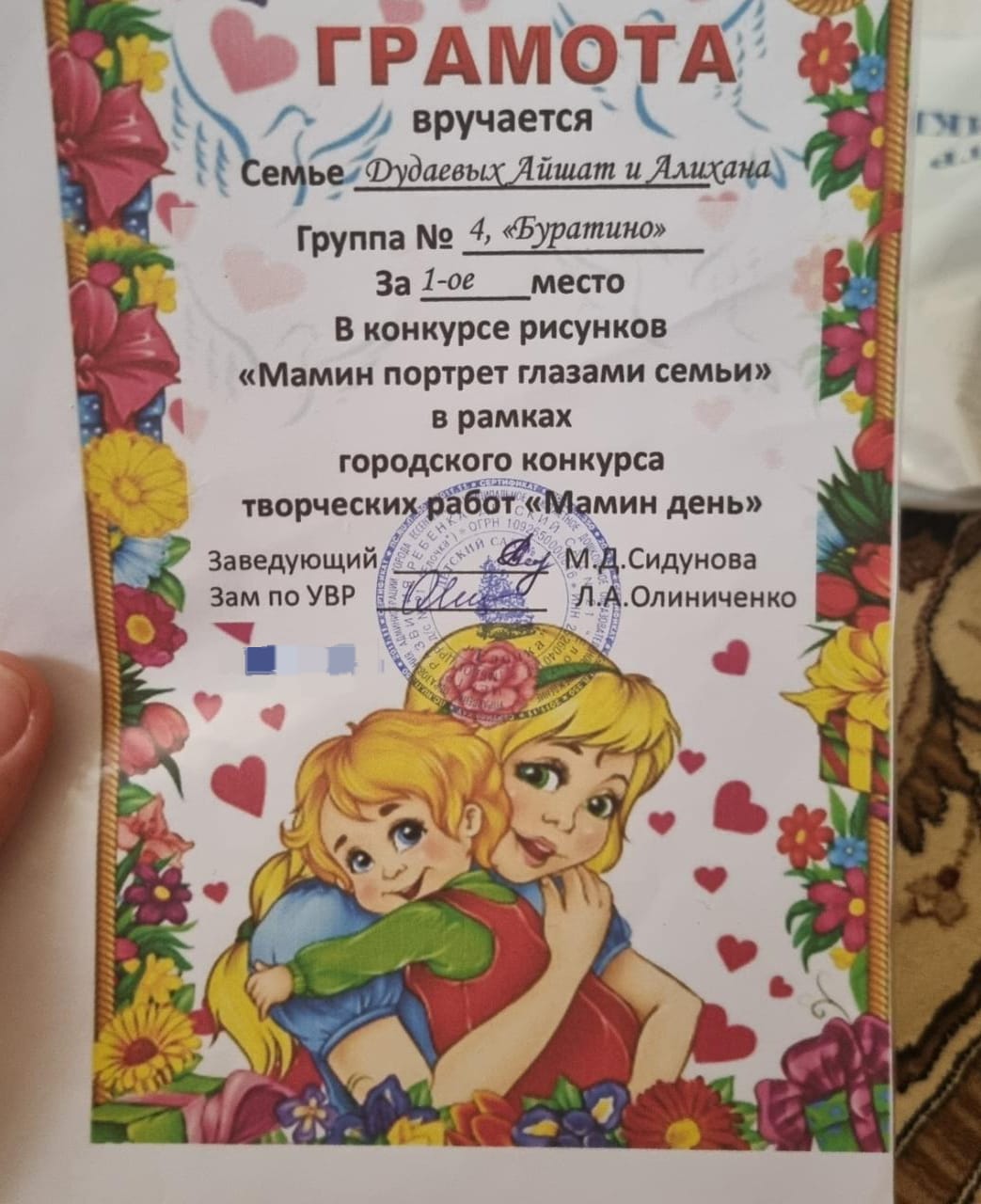 Семья Дудаевых Айшат и Алихан победили в городском конкурсе рисунков "Мамин день" .