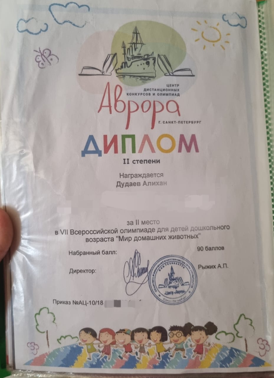 Обучающийся МБОУ «СОШ № 53» г. Грозного Дудаев Алихан занял призовое место во Всероссийской олимпиаде для детей дошкольного возраста