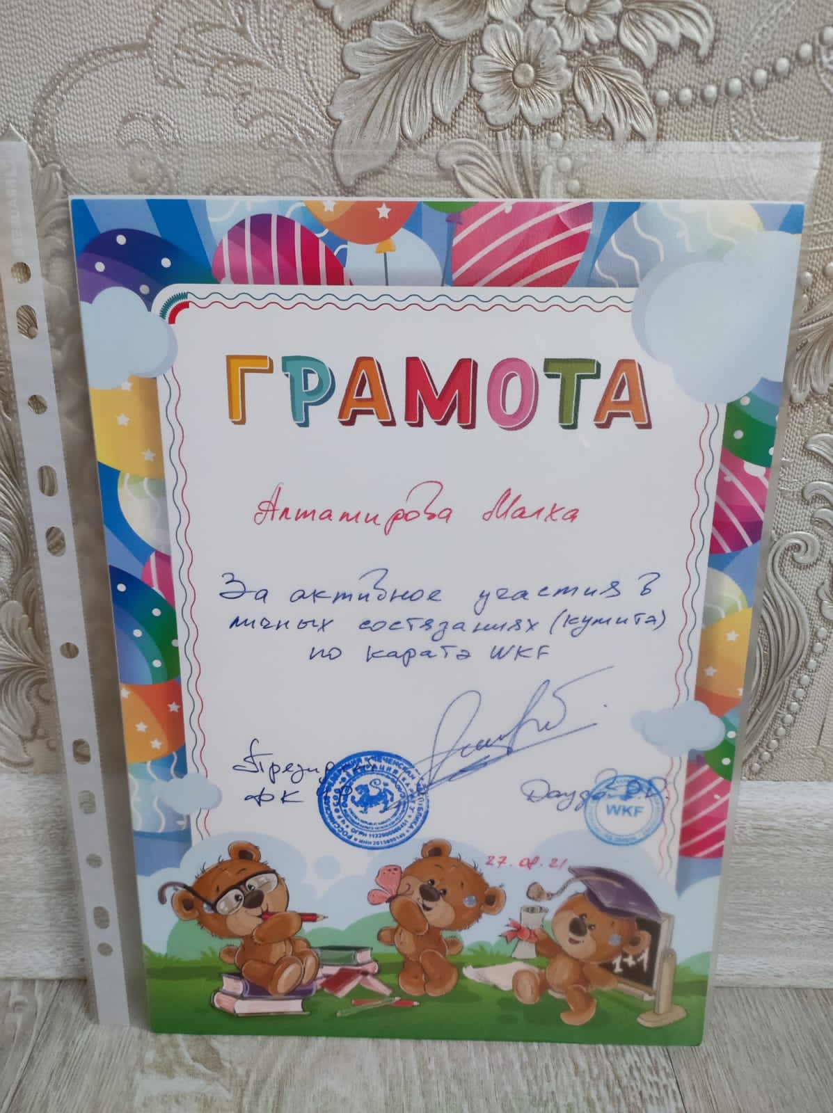 Алтамирова Марха награждена грамотой за участие в личных состязаниях по Каратэ