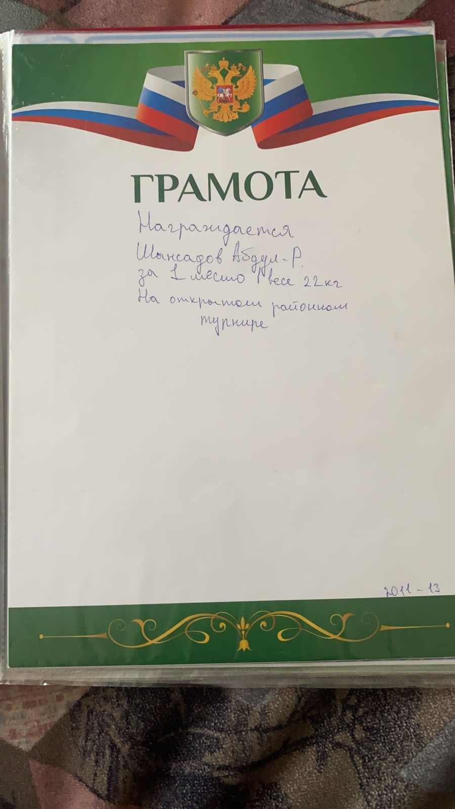 Шамсадов Абдулрахим стал победителем районного турнира по вольной борьбе.