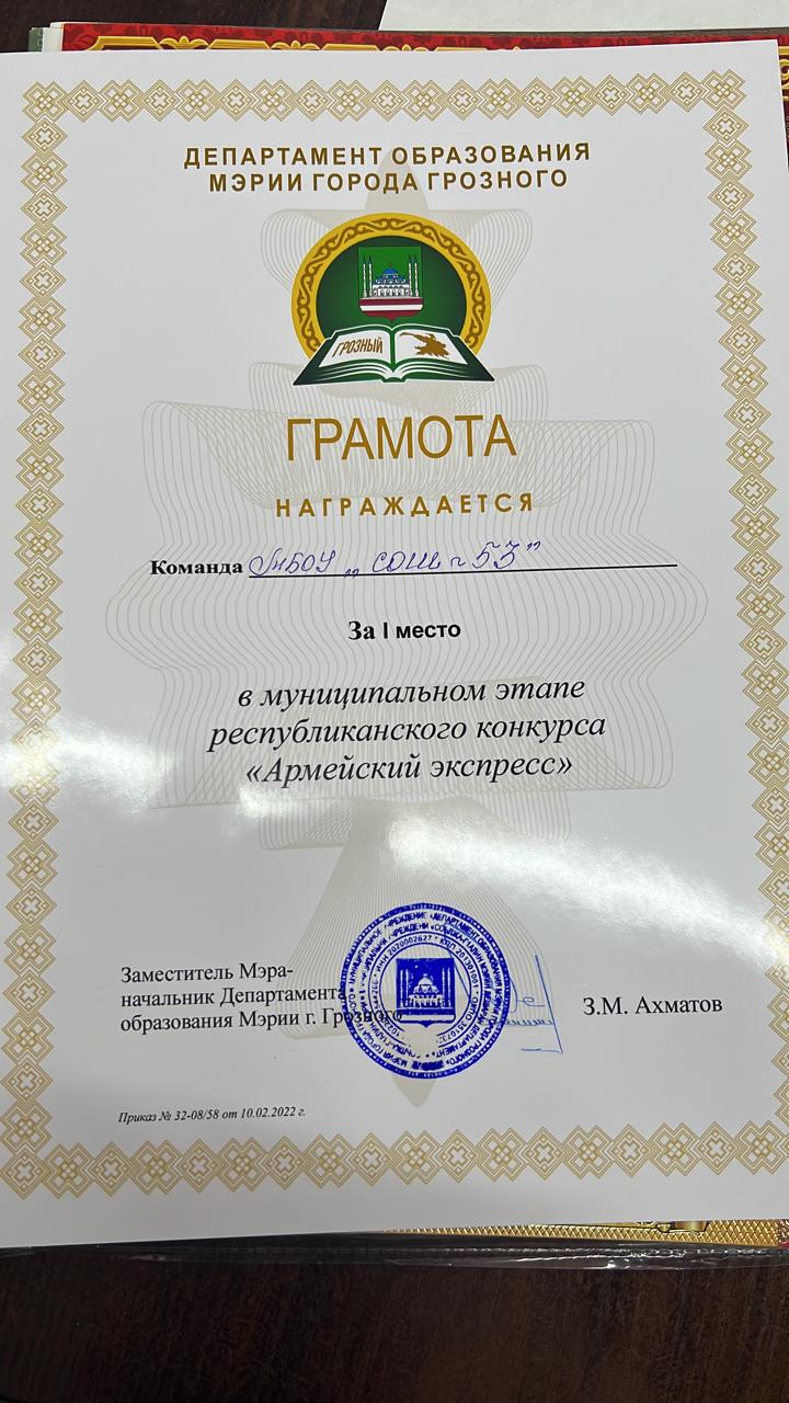 Команда МБОУ "СОШ № 53" стала победителем в муниципальном этапе конкурса " Армейский успех" .