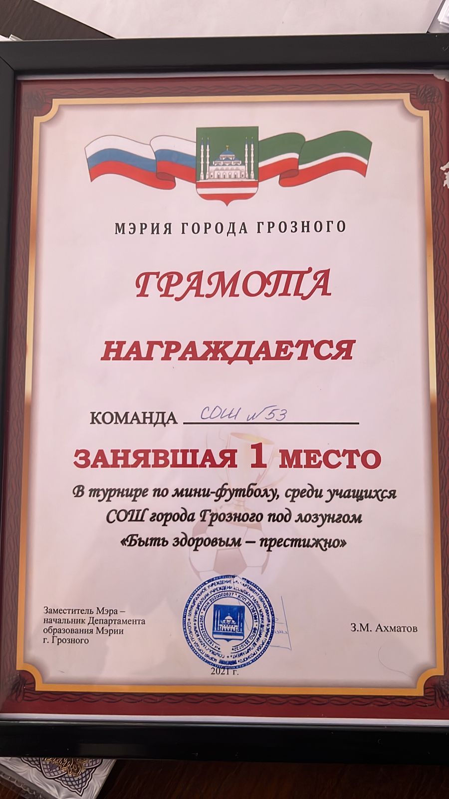 Команда МБОУ «СОШ №53» стала победителем в турнире по мини-футболу, среди учащихся СОШ города Грозного