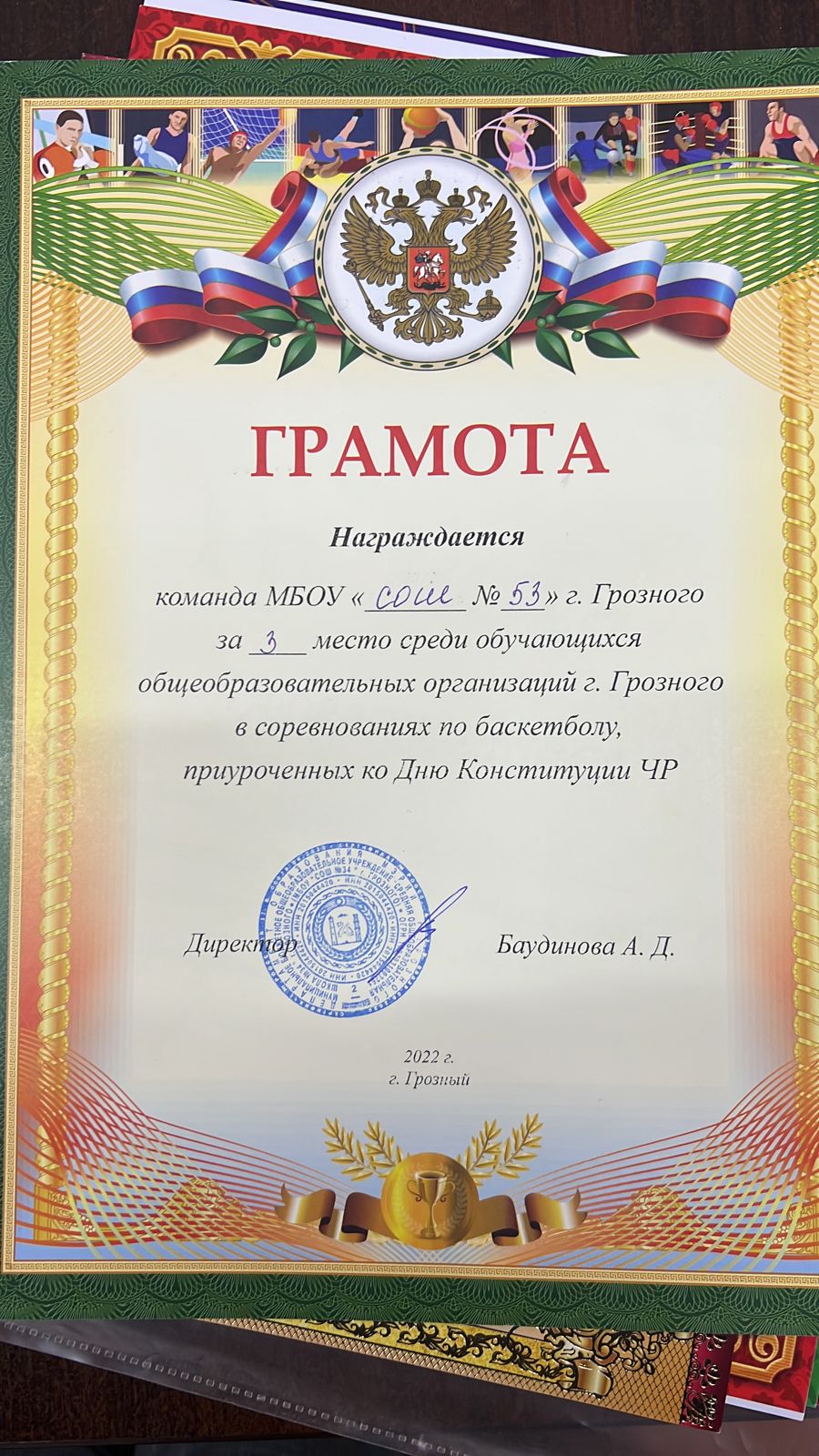 Команда МБОУ «СОШ № 53» заняла 3 место среди обущающихся образовательных организаций г. Грозного