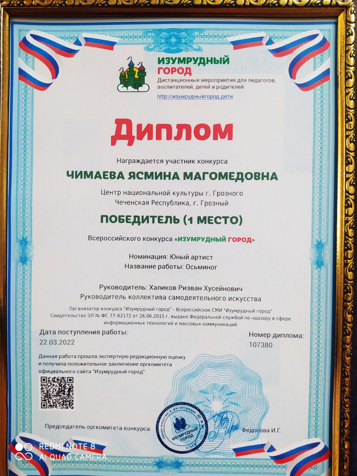 Ученица МБОУ "СОШ № 53" Чимаева Ясмина стала победителем Всероссийского конкурса " Изумрудный город" в номинации "юный артист".