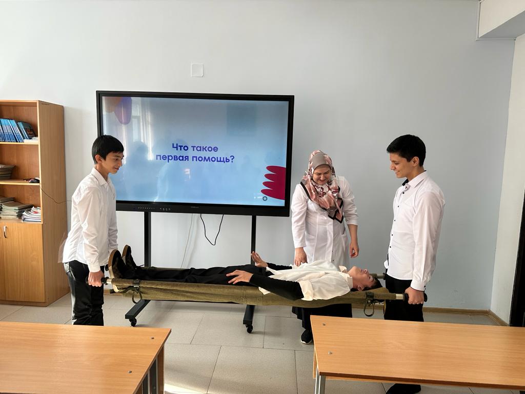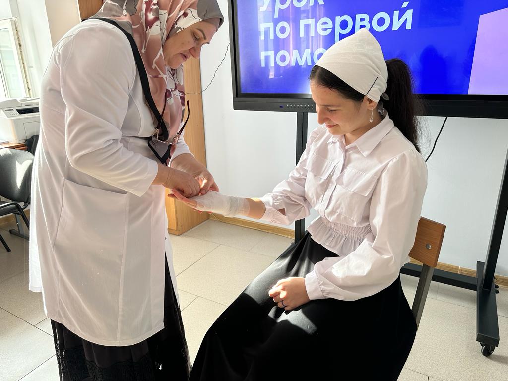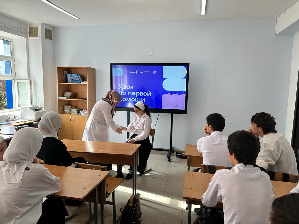 07.11.2023В рамках реализации Всероссийского проекта «Первая помощь» в МБОУ «СОШ № 53» г. Грозного советником директора по воспитанию Магомадовой М.С. совместно с медицинской сестрой Шариевой М.А. проведен тематический урок, на котором обучающиеся 8-11 классов ознакомились с основными понятиями и принципами оказания первой помощи.