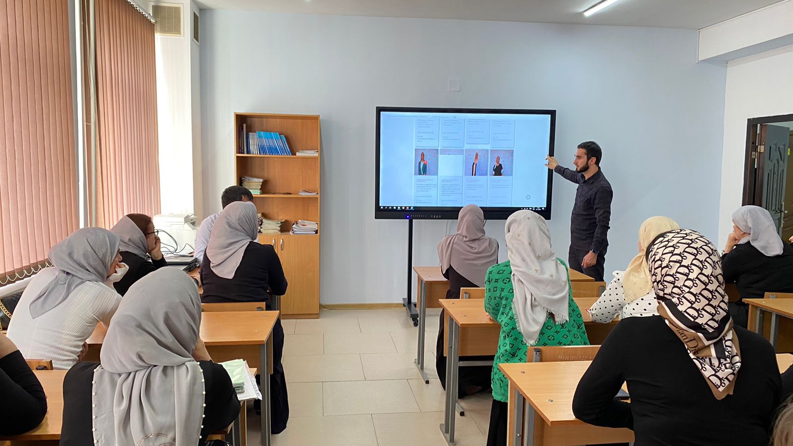 13.11.202313 ноября 2023 г. в МБОУ «СОШ №53» г.Грозного директором школы проведён внутришкольный семинар по теме: «Знакомьтесь: наши региональные методисты!»В семинаре приняли участие все педагогические работники школы. Ибрагим Сайпудинович отметил каскадную модель научно-методического сопровождения педагогических работников, координацию деятельности сети ЦНППМ, организацию повышения квалификации и методическое сопровождение региональных методистов. Также вниманию педагогических работников были представлены региональные методисты.Ибрагим Сайпудинович акцентировал внимание присутствующих об использовании информационно-аналитической системы «Таллам» для автоматизации оценки качества урока в соответствии с требованиями обновлённых федеральных государственных образовательных стандартов