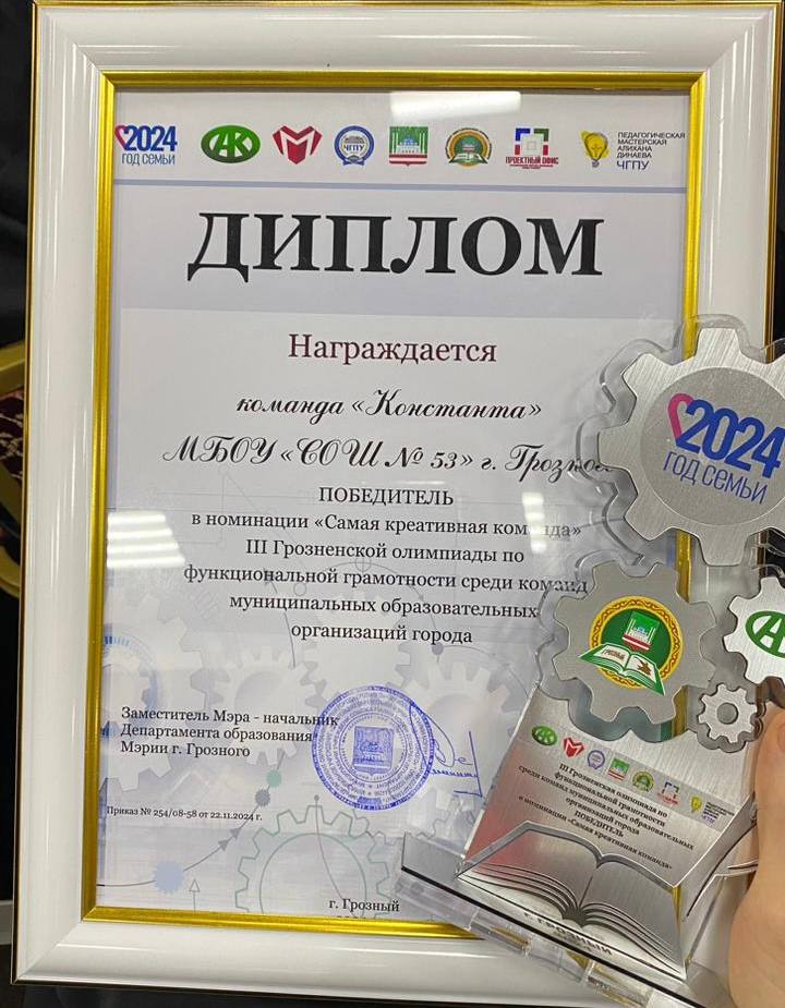 Команда «Константа» МБОУ «СОШ № 53» г. Грозного стала Победителем в номинации «Самая креативная команда» на III Грозненской олимпиаде по функциональной грамотности среди команд муниципальных образовательных организаций города