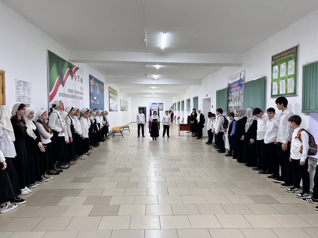 27.01.2025Учебная неделя в МБОУ «СОШ № 53» г. Грозного началась с исполнения Государственных гимнов Российской Федерации и Чеченской Республики.В церемонии проведения торжественной линейки приняли участие обучающиеся начальной и старшей школы.