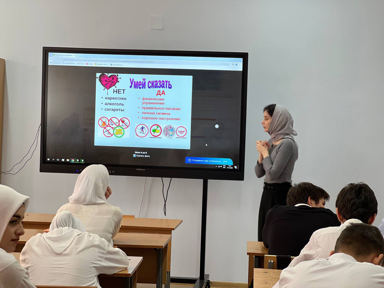 В МБОУ «СОШ N° 53» г. Грозного в рамках месяца профилактики правонарушений и безнадзорного поведения, профилактики наркомании, употребления психоактивных веществ, пропаганде здорового образа жизни , педагог-психолог Дошукаева Х.Р. в 5-10-х классах провела беседу на тему «Умей сказать НЕТ».