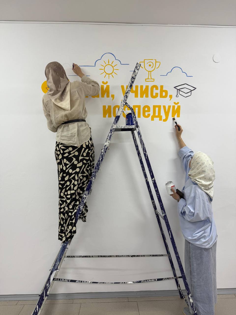 В МБОУ «СОШ № 53» г. Грозного активно оформляют стены к началу учебного года — скоро здесь станет ещё красивее и уютнее! 🎨📚