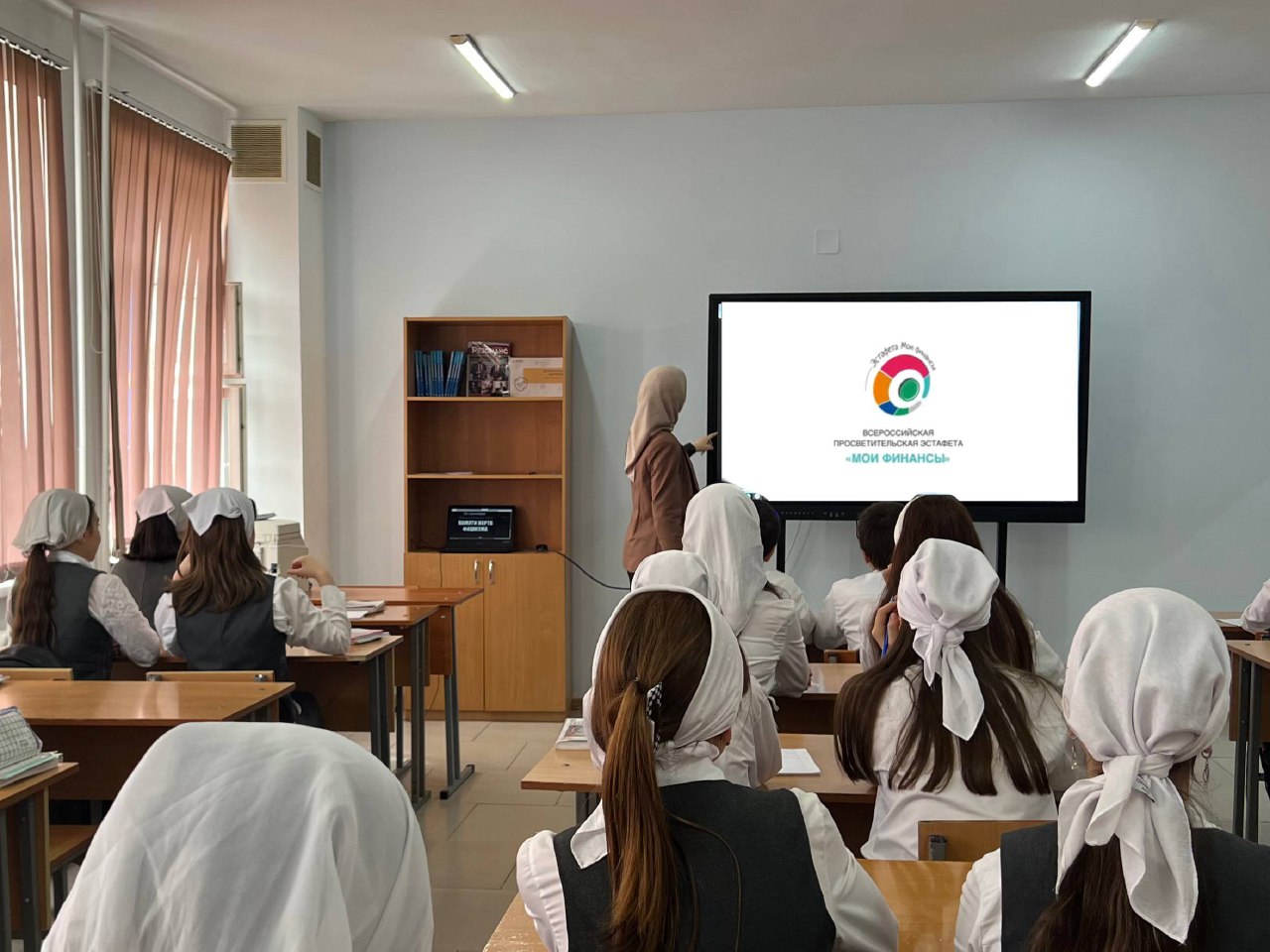 В МБОУ "СОШ № 53" г. Грозного на уроке обществознания прошёл урок по теме: "Финансовая безопасность для всей семьи: защити свои деньги" для 9-11х классов.