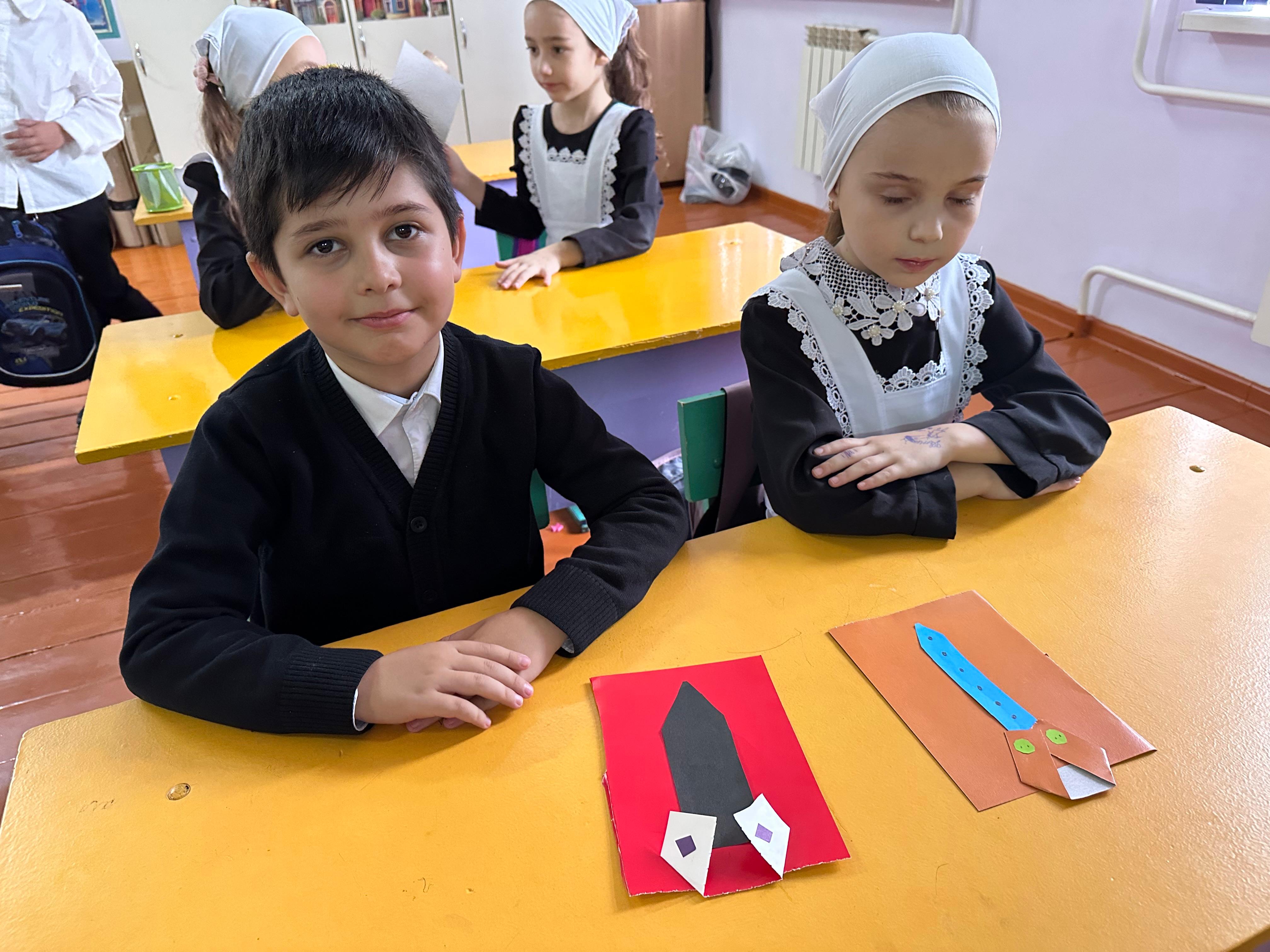 Врамках недели посвященной 19 октябрю- Дню пап в России В МБОУ" СОШ с.Виноградное" ученики младших классов провели Мастер класс по изготовлению открыток для папы.