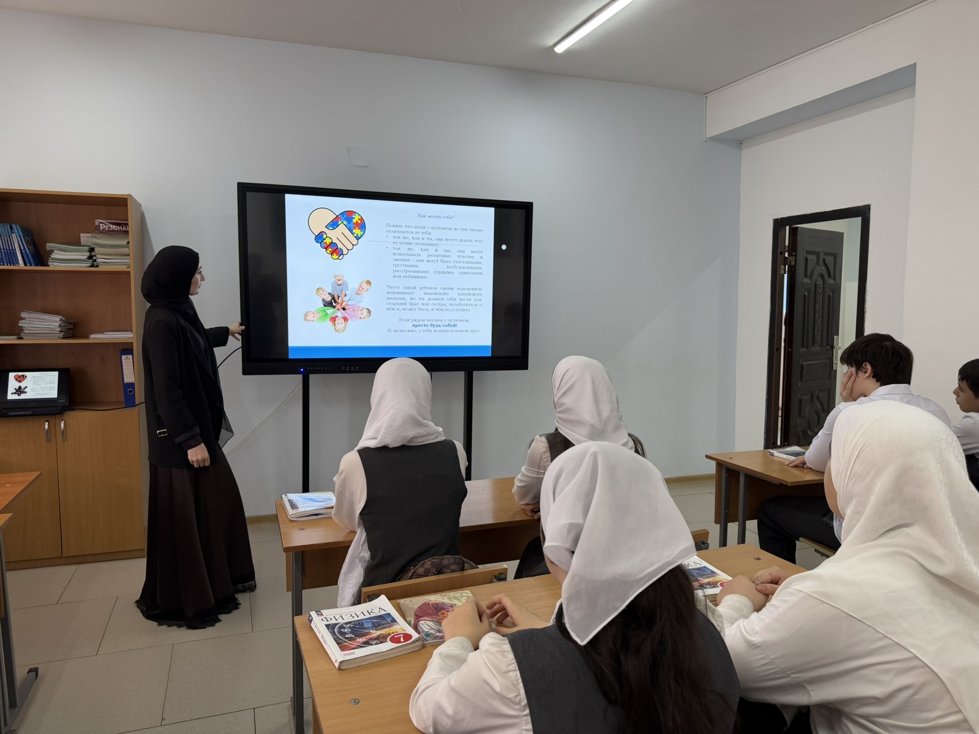 02.04.2026В МБОУ «СОШ №53» г. Грозного проведен единый информационный классный час «2 апреля. Всемирный день распространения информации о проблеме аутизма». Мероприятие было организовано с учетом возрастных особенностей обучающихся и направлено на формирование уважительного и понимающего отношения к детям с расстройством аутистического спектра.