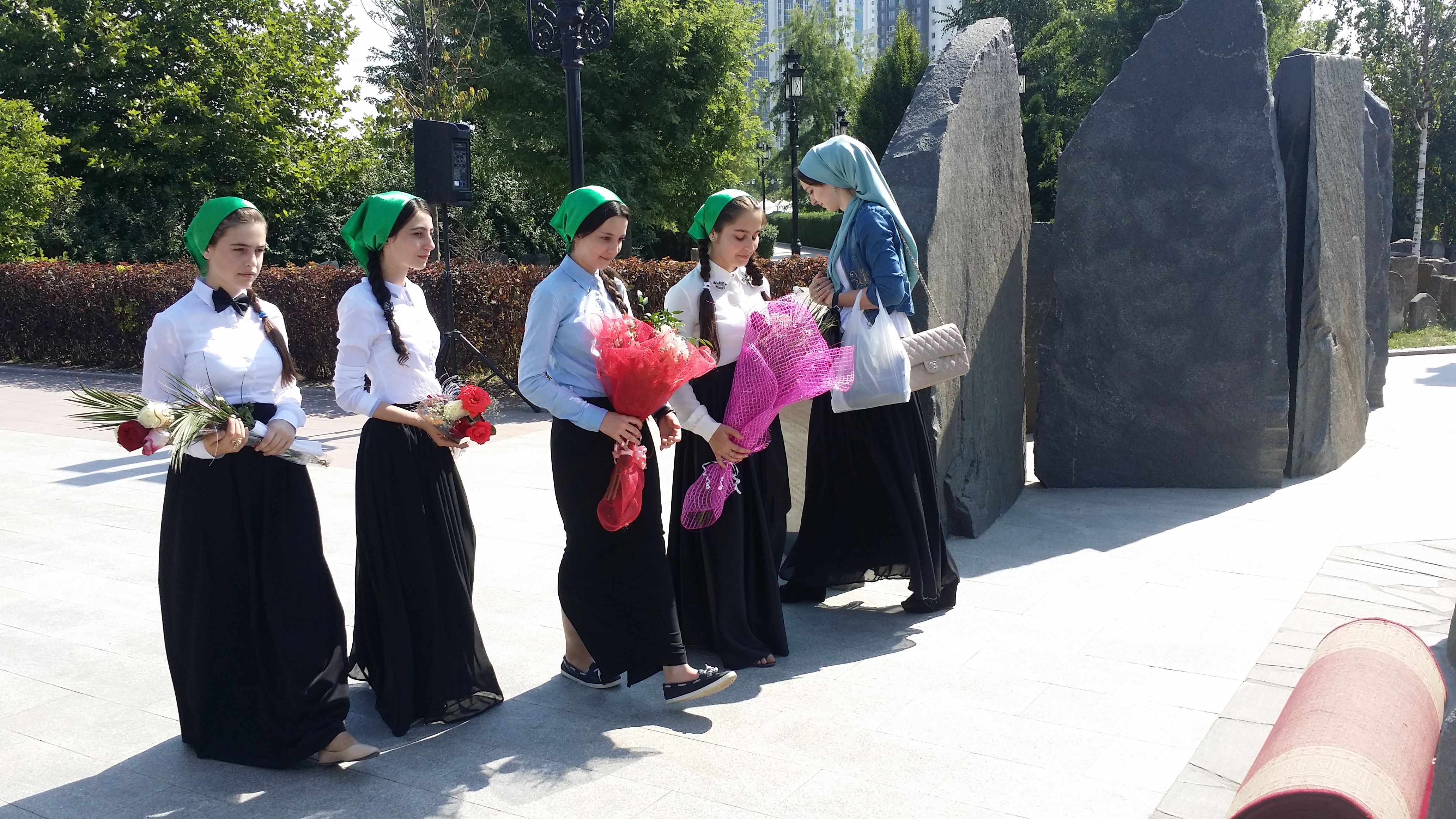03.09.15 г. в 10:00 члены патриотического отряда «Юные Кадыровцы» возложили цветы к мемориалу погибших при исполнении служебного долга сотрудников правоохранительных органов и военослужащих.